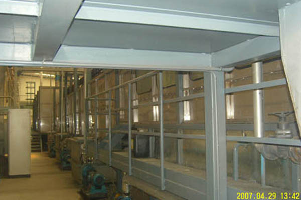 2、前處理生產線各工序噴淋管布置在隧道內,噴淋由各液槽的泵來提供。